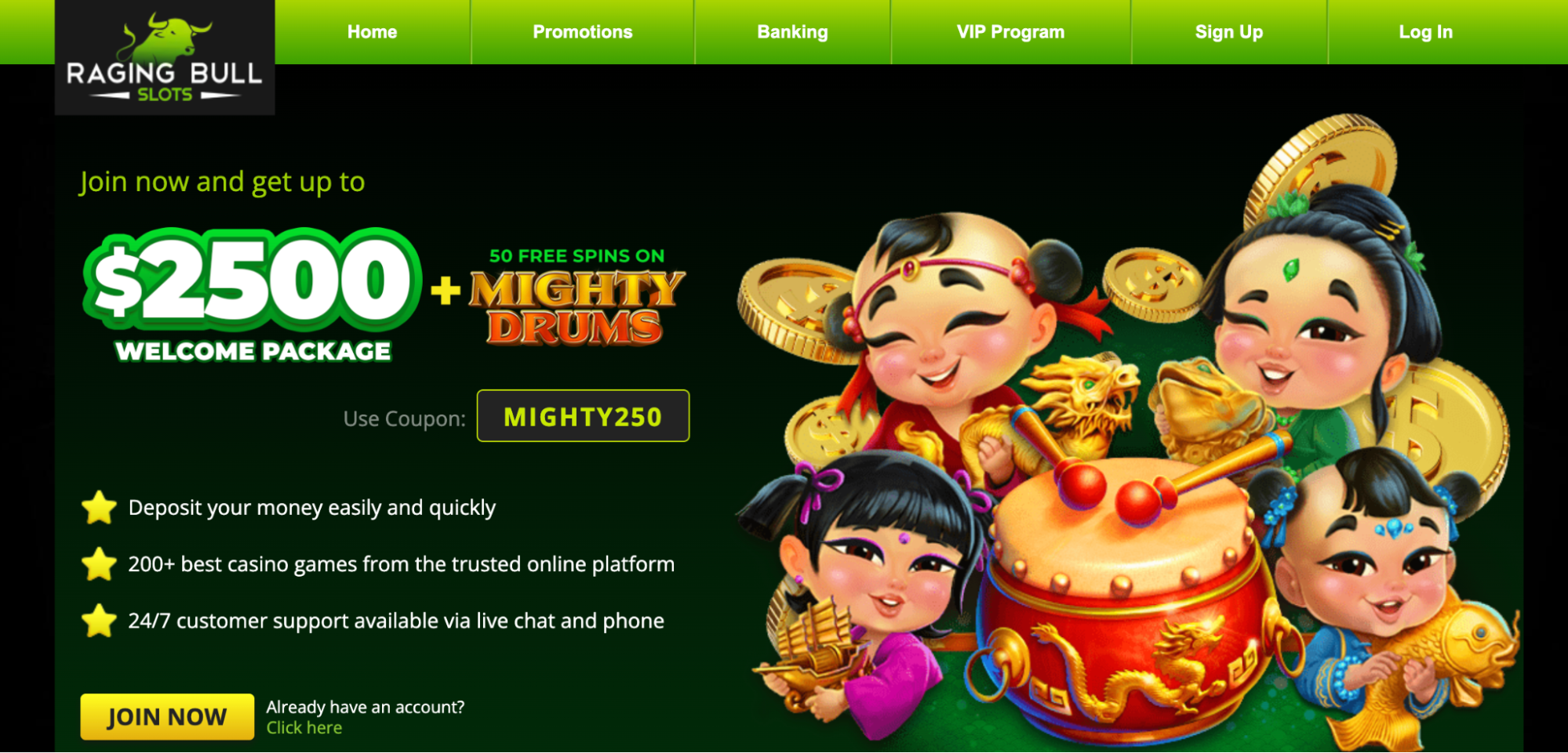 Overall, Raging Bull delivers a high-energy, slot-focused experience with appealing promotions and solid banking options. Its mobile-friendly interface and broad game variety make it a suitable alternative for Missouri players looking for an international casino experience.